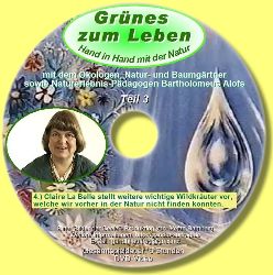 Grünes zum Leben Grünes zum Leben. Hand in Hand mit der Natur mit dem Ökologen, Natur- und Baumgärtner sowie Naturerlebnis-Pädagogen Bartholomeus Alofs Im Rahmen einer Führung durch die Natur werden wir eßbare Wildkräuter kennenlernen und spielend Natur erleben. Dieses Video ist trotz der enormen Länge an keiner Stelle langweilig. Bartholomeus versteht es wirklich einem Natur nahe zu bringen. Inhalt: 1.) Vortrag von Bartholomeus "Hand in Hand mit der Natur". Dadurch, dass Bartholomeus Mensch und Natur als eine Einheit betrachtet, versteht er es in wunderschöner Weise, dem Menschen zu helfen, wieder eine Beziehung zur Natur aufzubauen. Nach diesem Vortrag werden sie die Natur mit neuen Augen betrachten. (Dauer 2 Stunden 17 Minuten) 2.) In der Natur werden wir einige Wildkräuter kennenlernen in interessanter und lebendiger Weise von Bartholomeus vorgestellt bekommen. Mit vielen Tips und Hinweisen auch zum richtigen Biogärtnern. Eine Liste, in der Reihenfolge wie sie im Film vorkommen, liegt bei. 3.) Vorstellung von wichtigen Büchern über Wildkräuter und weiteren Tips. 4.) Karin stellt weitere wichtige Wildkräuter vor, welche wir vorher in der Natur nicht finden konnten. 3 DVD´s, Spieldauer: 6 Stunden, 27,- | ||||||||||||||||||||||||||||||||||||||||||||||||||||||||||||||||||||||||||||||||